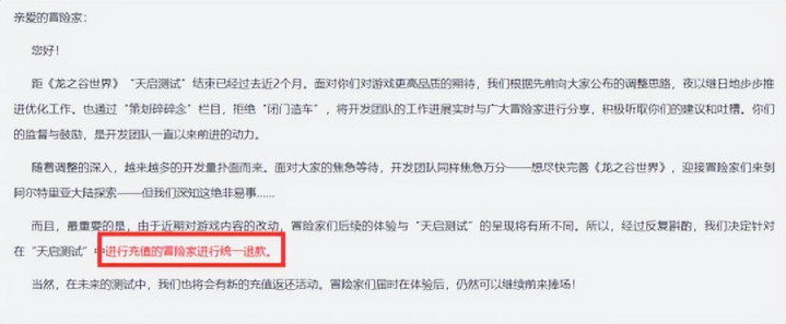 付费测试结束后,官方甚至主动开启了退款