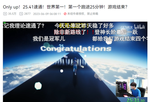 目前全球速通记录,就是我国游戏主播创下的,上大分。