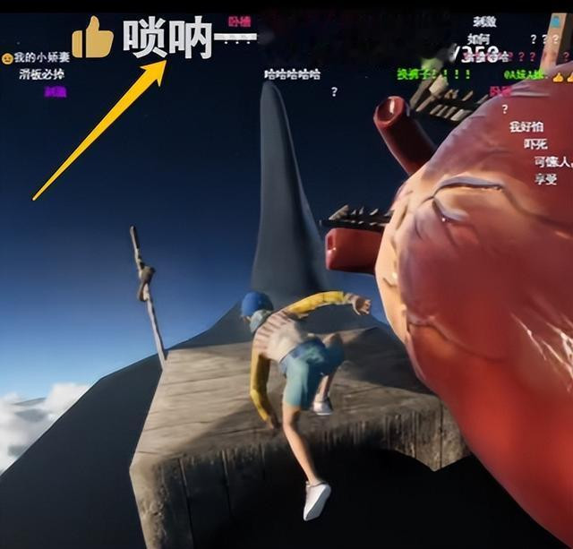 有位主播好不容易到最后一关,又掉下去了,气到尖叫,被围观网友调侃说:“是唢呐声”。