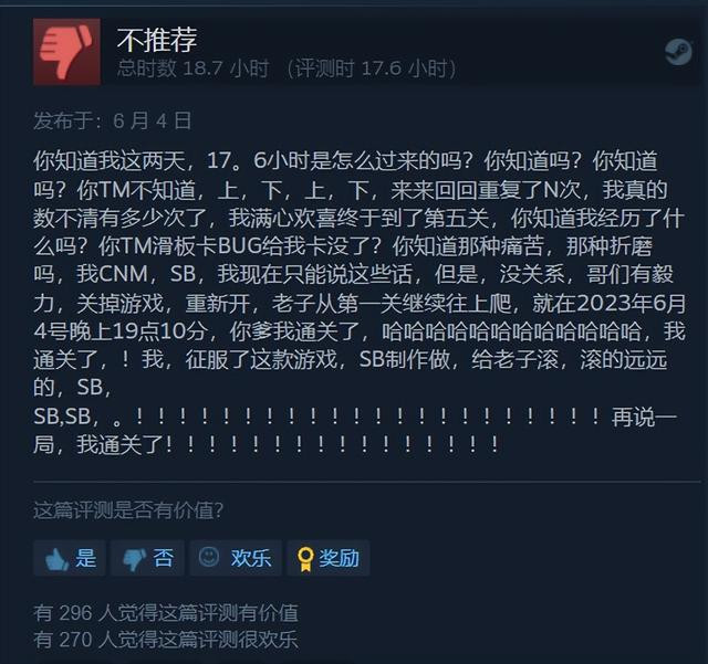 玩家们在评论区夸得越厉害,恰恰说明,他们可能在游戏中被虐得越惨。