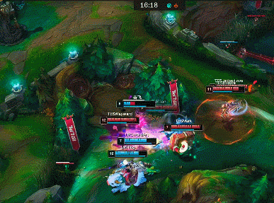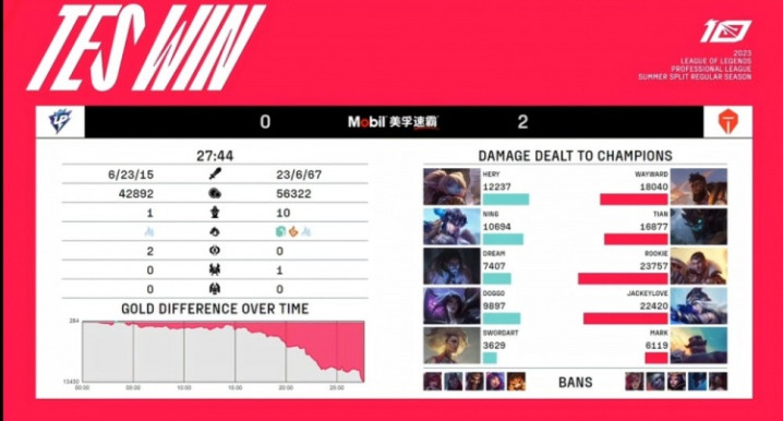 [5:35]TES三人强行越下,SwordArt芮尔交出闪现之后被JackeyLove艾希晕住,Mark布隆点燃将他击杀!