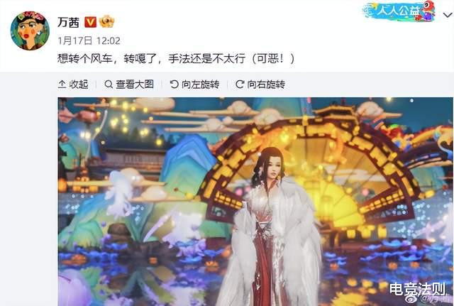 随着魔兽世界的关服,像万茜这样顶流公会会长该何去何从?引起不少人的猜测,没想到就在今天,万茜的微博发布了一组图片,并且配文:“想转个风车,转嘎了,手法还是不太行(可恶!) ”。