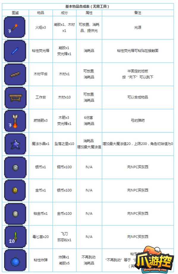 在泰拉瑞亚游戏中有超多的物品,玩家可以根据基本物品合成表制作出想要的东西,今天小编就为大家带来泰拉瑞亚合成表大全,希望可以帮到大家。