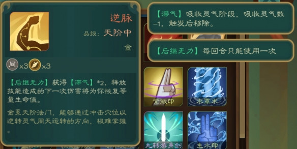 代价自然是造成不小的内伤,没几年的静养都补不回来的那种,但这门神通奇妙的地方在于——逆转经脉运行生成的灵气会和普通灵气有所不同,它们既有金灵气斩断万物的锐气,也有水灵气滋养万物的温润,金和水本就是相生的灵气,用这些灵气发动的下一次神通可以掠夺对手的生命力,转而治疗自身。