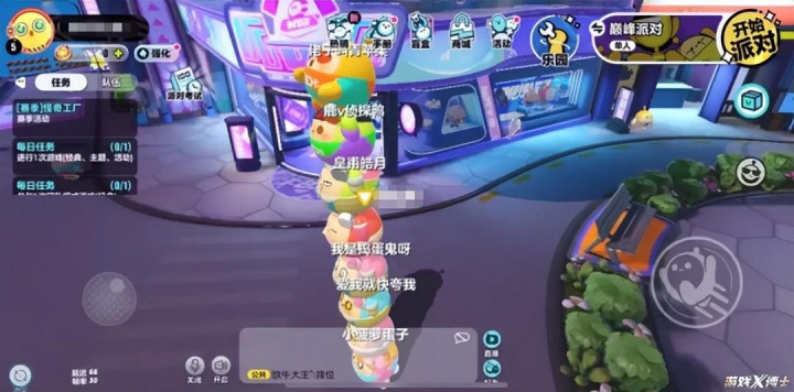 在这样的社交文化影响下,即使《蛋仔派对》并没有工会系统,但玩家依旧自发组建小团体,伴随着社媒平台上围绕游戏内社交展开的小剧场、游戏实录等内容,更进一步对外进行扩散,吸引了更多用户加入其中。