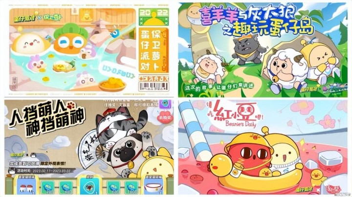 当然,《蛋仔派对》也不会放过“IP联动”这一个当下在网游界十分热门且性价比高的营销策略,《喜羊羊与灰太狼》、《保卫萝卜》、《第五人格》、《吾皇猫》、《红小豆》等IP都被收入其中。