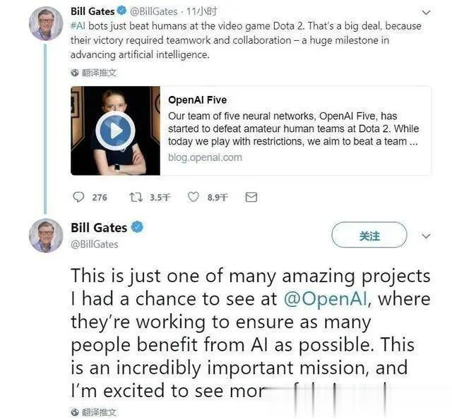 比尔盖茨当时亲自发帖,盛赞了这件事,称其为AI发展史的里程碑。然后,仅仅过了三个月,微软就砸了10亿美元投给它家。之后,就再没有首富的什么事了。