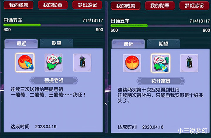 梦幻中有一些老玩家回归以后可能适应不了这个游戏,因为他们退坑时的梦幻西游的物品爆率是比较高的,现在梦幻西游内的物品爆率是比较低的,上面这位玩家回归梦幻三天就又想要退坑了,从这位玩家获得的成就之后就能够看得出来,这位玩家押镖是连续跑了三次方寸山,抓鬼时连续获得了两次牡丹这样的奖励,已经使得这位玩家对梦幻西游的几率失望了。