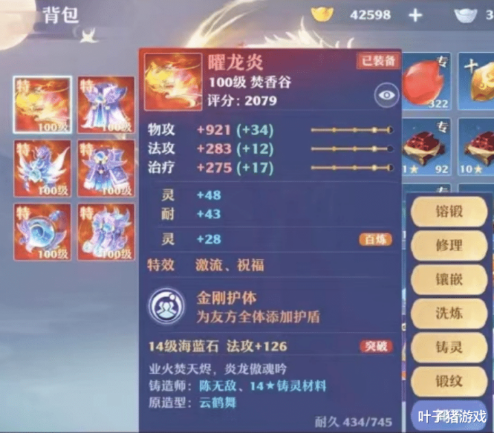 这个是服战大佬“陈无敌”所用的武器,只能说恐怖如斯。首先看下,武器的基础属性,因为是祝福特效,所以法攻值加上铸灵已经达到283点了,很高的一个数值。