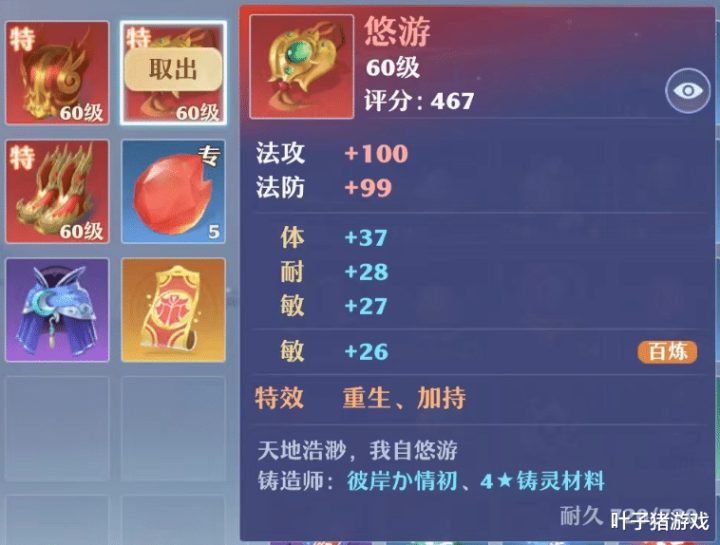 而且就像刚才咱们鉴赏帽子的猛击,裤子的灵慧,配饰也有一个知名的特效,那就是重生,搭配重生这个特效,对实力的提升是无需质疑的,整个组合下来无愧于极品装备之名。