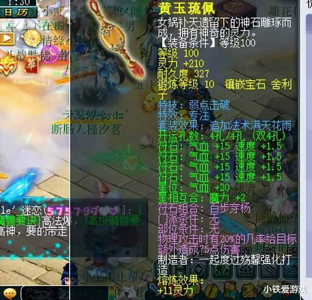 这个项链是100级的,目前宝石是满等级了,因为10级的宝石本身不算太贵,稍微好一点的装备,都是值得上满宝石的。而且熔炼属性不错,额外加了11点的灵力,这差不多等于是2级舍利子了。