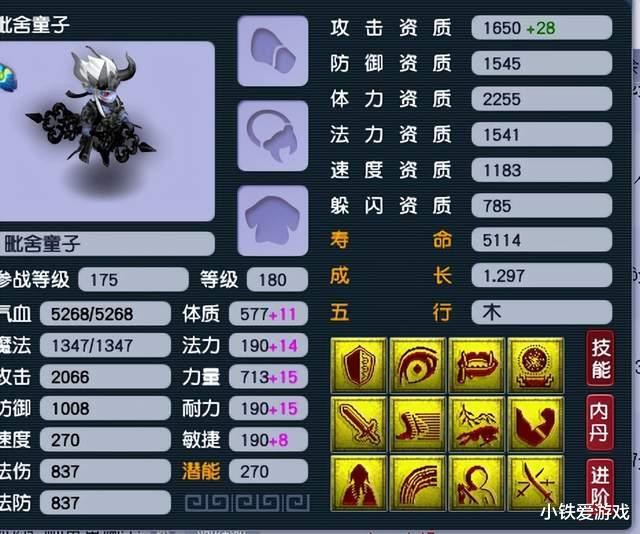 善恶的宝宝首发,一直都是很恐怖的存在。它们会稍微加一点气血,这样不至于被一刀秒。然后就是依靠恶报的强大输出,特别是在前期点杀的时候,非常难招架。这个童子就是很暴力的善恶神宠,技能肯定是不会缺的,虽然没有翻页,也是依旧很暴力。