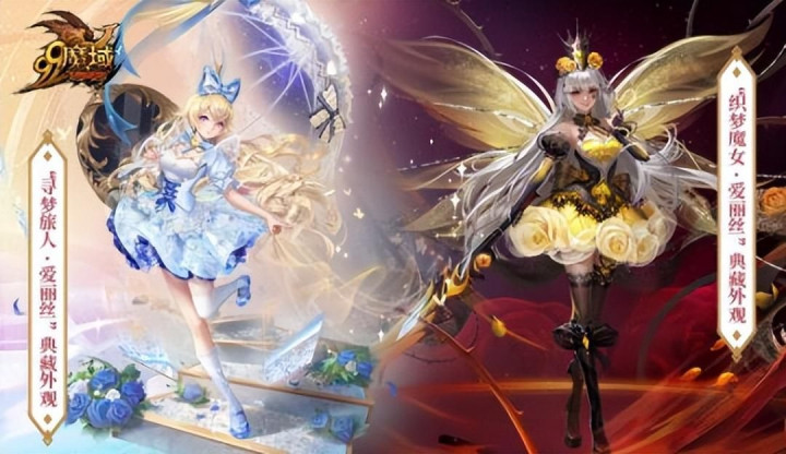 另一边的“织梦魔女•爱丽丝”,则有点像红白女王的结合体,既张扬热烈,喜好派对和宴会,又深受梦境王国国民的爱戴,用与生俱来的魔力守护着梦境王国。她的主动技能“迷梦蔷薇舞”与“寻梦旅人•爱丽丝”的技能效果并无二致,可以对敌人造成致命打击。